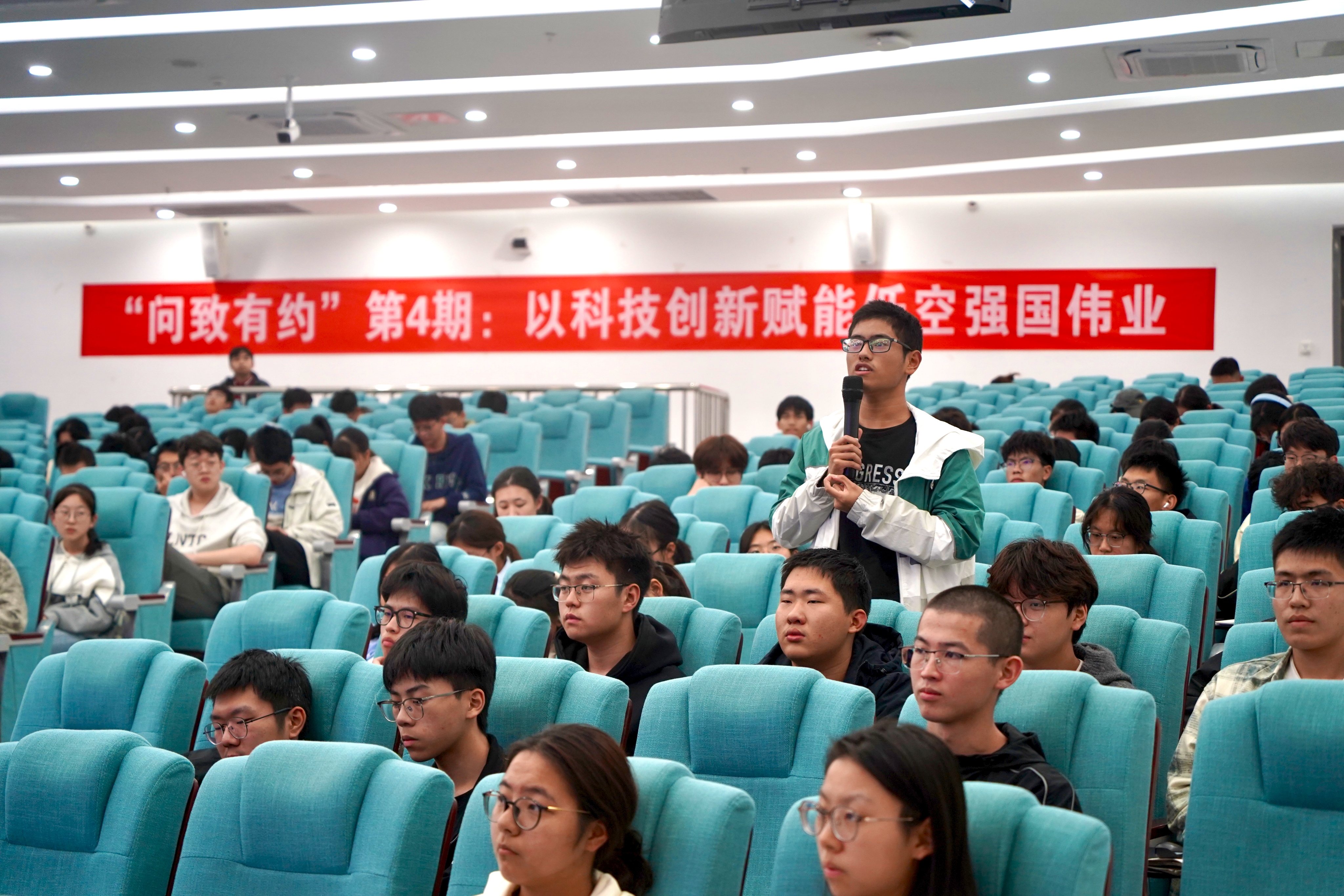 整场报告内容丰富、视野宏阔、深入浅出,不仅让同学们对全球科技前沿与国家战略需求有了更深刻的理解,更通过南航在低空经济领域生动的创新实践,极大地激发了大家的专业自豪感与历史使命感。在互动环节,同学们踊跃提问,就专业学习与低空领域的融合路径、新兴技术与传统行业的变革发展等话题与吴校长进行了深入交流,他一一给予了细致解答,令在场同学受益匪浅。